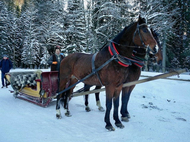 You can take a day-long trek, but if you hitch a ride halfway there- on a horse-drawn sleigh- you’ll reach in just under three hours.